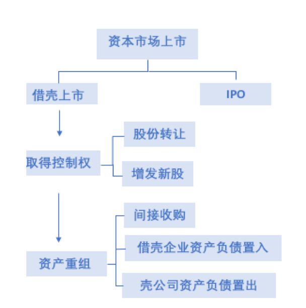 其中取得壳公司的控制权又分为:股份转让方式、增发新股方式以及间接收购方式。对壳公司进行资产重组可分为:壳公司原有资产负债置出和借壳企业的资产负债置入